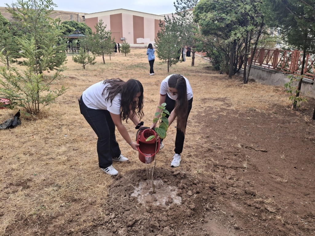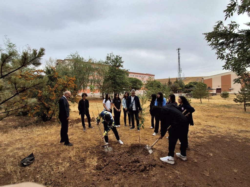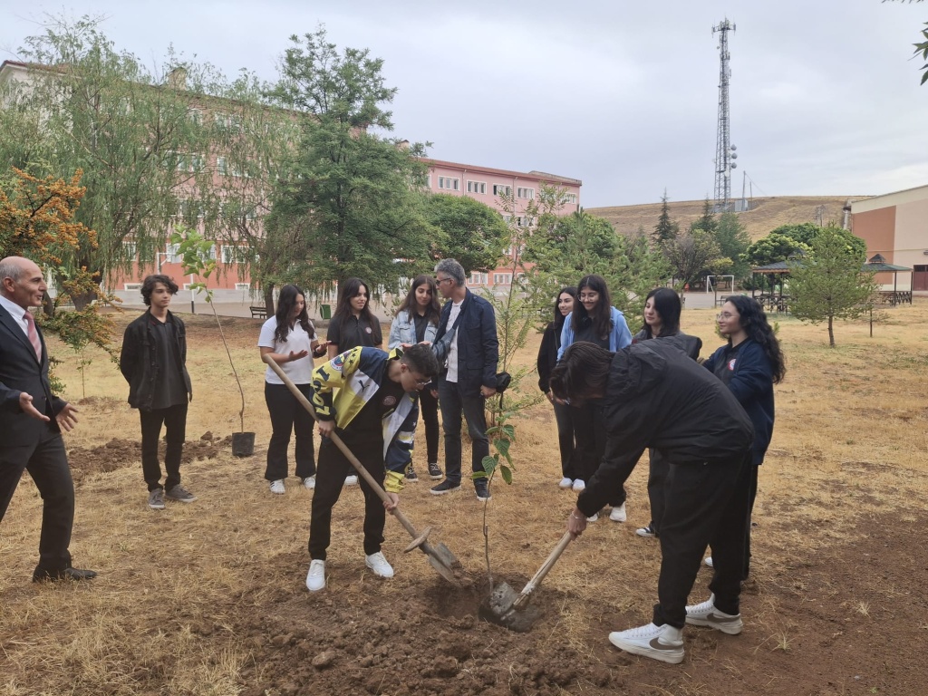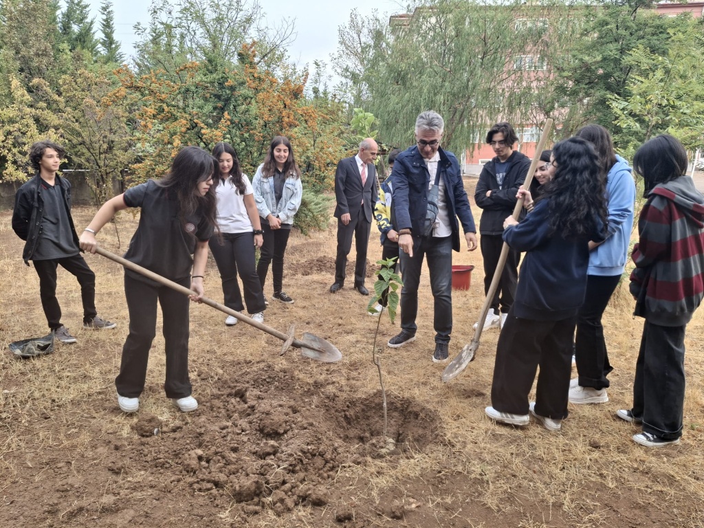 Etkinlik kapsamında, Coğrafya Öğretmenimiz Erhan CÖNGER ve Okul Müdürü Yalçın KEÇİCİ refakatinde öğrencilerimizin katılımıyla okul bahçesine meyve fidanları dikilmiştir.. Böylece öğrencilerimizin çevre bilincinin geliştirilmesi ve doğaya karşı sorumluluk duygusunun pekiştirilmesi amaçlanmıştır.