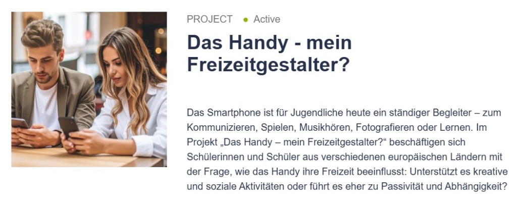 Geçmiş yıllarda olduğu gibi bu yıl da okulumuz, uluslararası iş birliğini güçlendirecek ve öğrencilerimizin dil, kültür ve dijital becerilerini geliştirecek heyecan verici e-Twinning projelerine ev sahipliği yapıyor. Bunlardan birisi de Almanca Öğretmenimiz Sedef Kacar Yıldırım’ın yer aldığı “Das Handy – mein Freizeitgestalter?” projesi. Bu proje ile öğrencilerimiz akıllı telefon kullanımlarının hayatlarındaki rolü, etkisi ,katkısı, artıları ,eksileri gibi pek çok yönü ele alacaklar . Projede Türkiye’nin yanı sıra Polonya, İtalya, Letonya, Hırvatistan, Fransa, Çekya, ABD ve Yunanistan’dan öğretmen ve öğrenciler de yer alıyor. Bu projeler sayesinde öğrencilerimiz, farklı ülkelerden akranlarıyla birlikte çalışarak hem yeni beceriler kazanıyor hem de kültürlerarası anlayışlarını geliştiriyor.